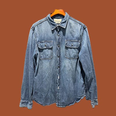 Last week a chambray shirt, this week a denim shirt. Similar in function but one for summer and one for winter. A staple for your closet. Note this is an auction so the price will increase.